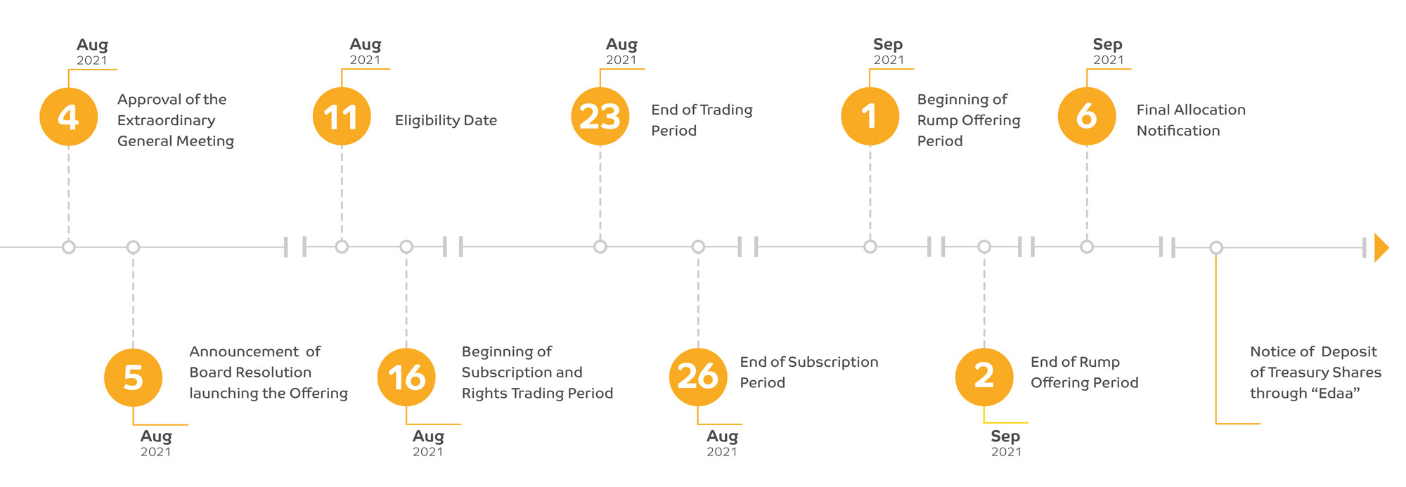 The below chart shows the mechanism adopted in offering treasury shares and relevant dates: